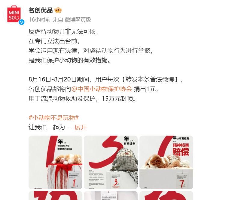 8月份,名创优品的一个反虐待动物展蛮出圈的。