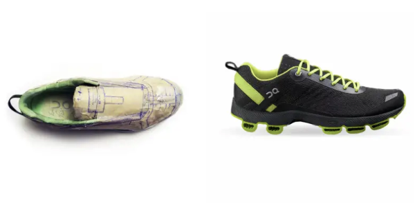 直到有一天 Bernhard 的朋友建议他把用来浇花的橡胶软管贴到跑鞋底上。于是他尝试着将水管切成许多段,并排贴在鞋底,这也是昂跑的核心科技 CloudTec 的雏形。