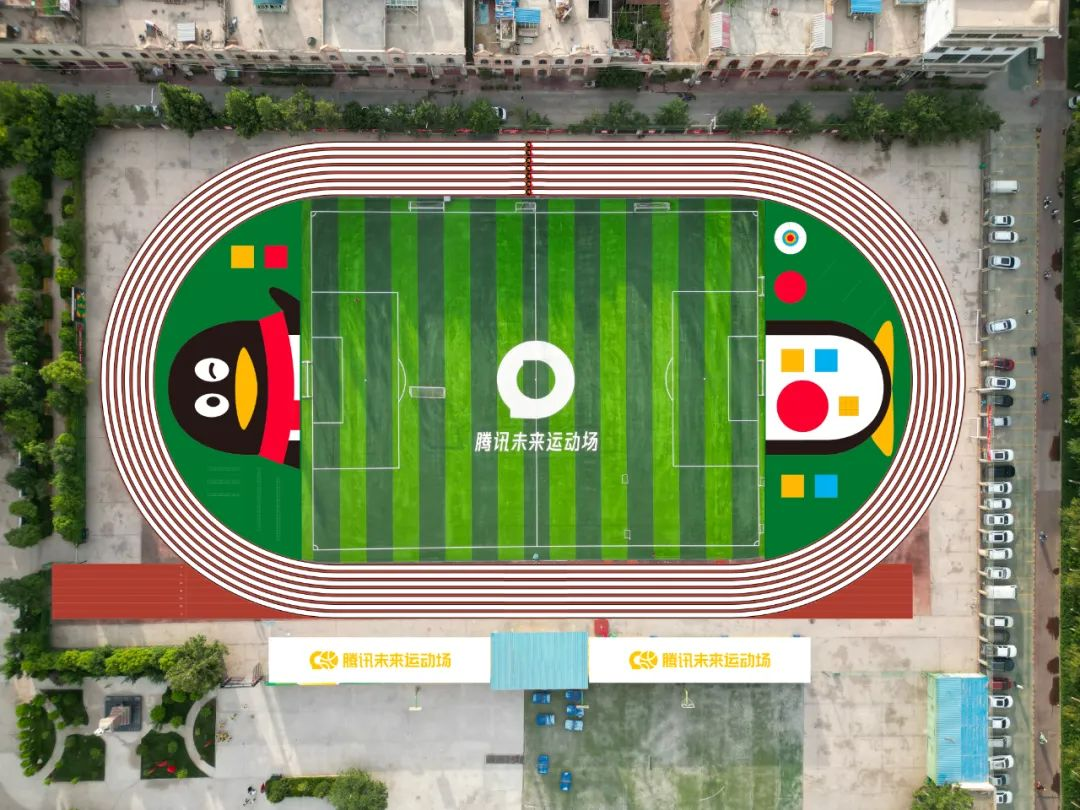 礼盒中的「运动场」是腾讯在新疆喀什特别修建的“长鹅·未来运动场”,腾讯计划为城乡孩子准备100个“未来运动场”、100个“未来教室”以及游戏化课程与赛事活动,让孩子们感受到运动和知识带来的快乐。