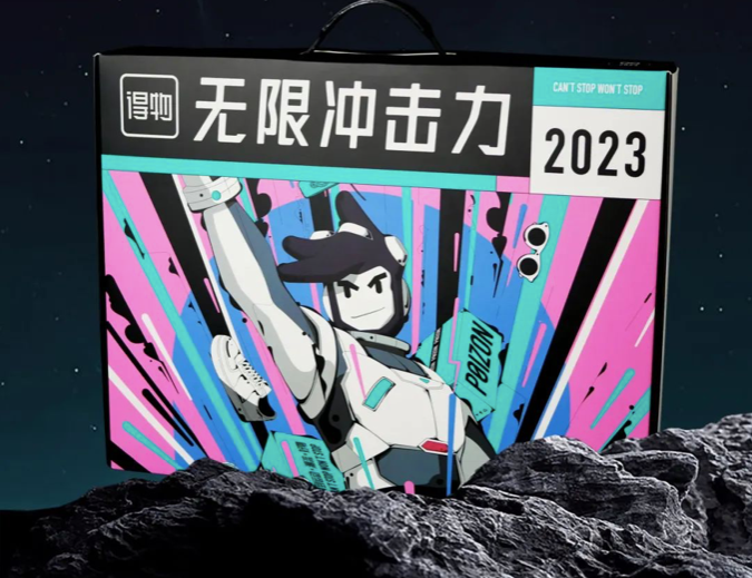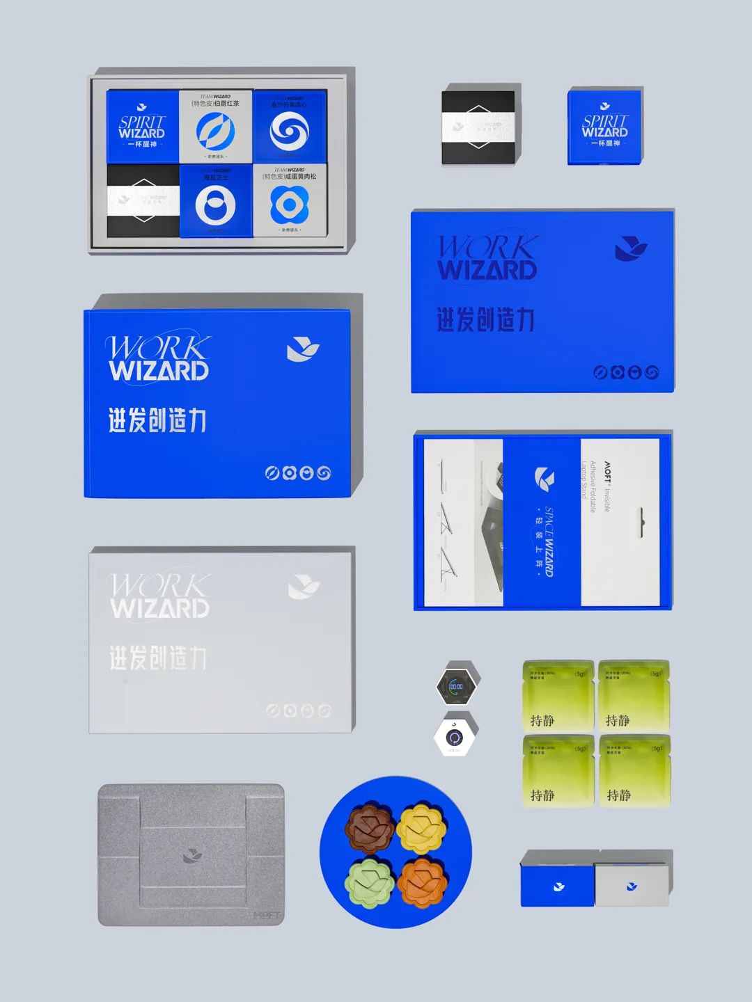 飞书2023年中秋礼盒以“Work Wizard · 迸发创造力”为整体概念,包装简洁大气,体现商务属性的同时,通过大胆有趣的概念,和兼顾新颖及实用性的礼品,来强调「聚焦工作场景」「追求高效工作」的品牌调性。