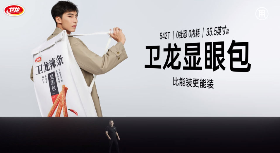 比如在9月25日华为秋季新品发布会刷屏的当天,卫龙也召开了一个“显眼包”发布会,就狠狠蹭了一把。