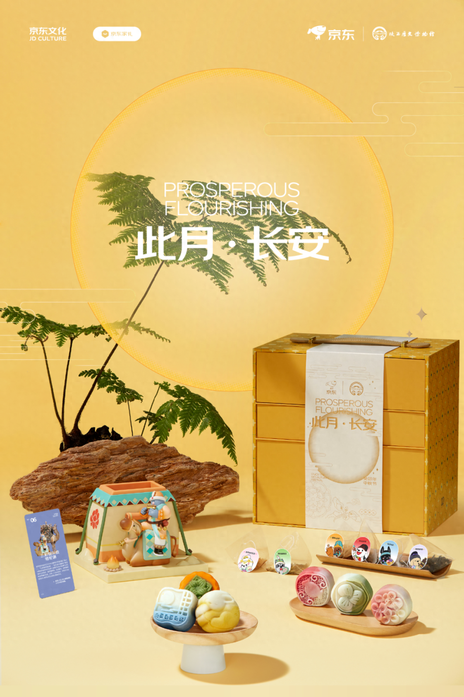 京东的中秋礼盒主题是“此月长安”,由陕西历史博物馆开发,从外观上看,这些色彩取自中国传统色如群青、栀子、水龙吟、桃夭、苍苍等,展现出超高颜值。