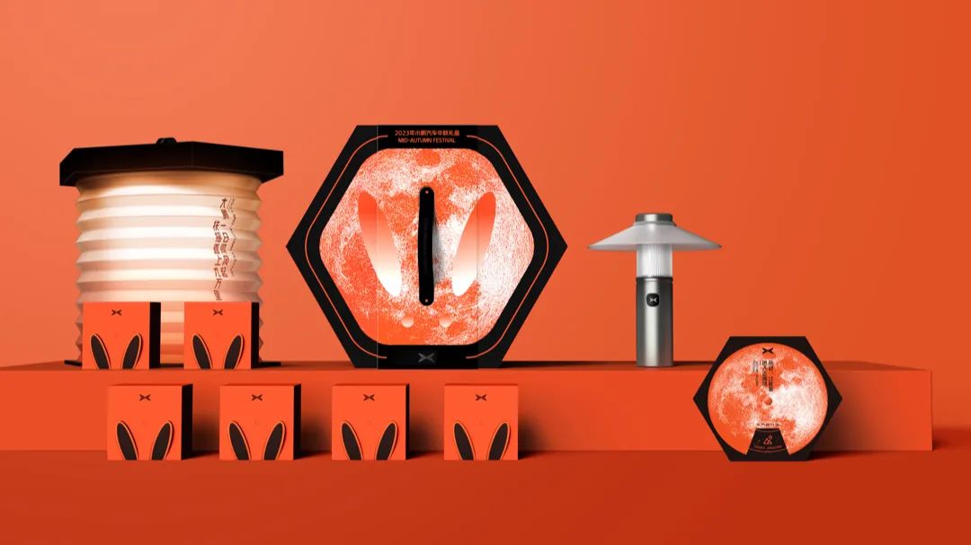 小鹏汽车中秋献礼中内含立体磁吸折叠灯笼、露营灯、陶陶居品牌月饼。六边形盒寄寓吉祥如意,可立兔耳饼盒童趣生动,露营灯致意探索者,点亮前行的光灿,而宫灯造型最是代表着中秋遐思,愿团圆、愿事成。