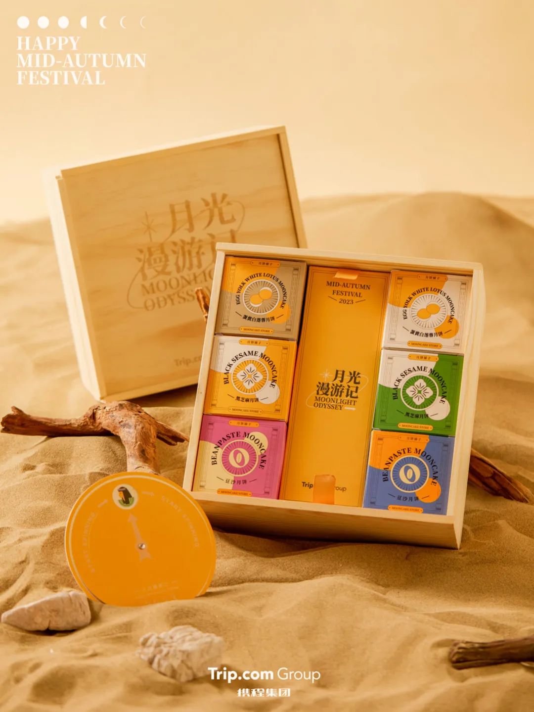 礼盒内含:「漫游世界80天」桌游套组、「月光漫游」漫游者徽章、「月光漫游」冒险木盒、「月光漫游」月饼套装、「月光漫游」中秋贺卡。
