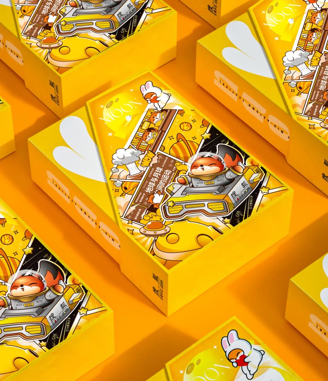 礼盒以虎牙仔探索浩瀚宇宙的故事为灵感,传递虎牙人凝心聚力、突破前行的信念。寓意在中秋佳节之际,共赴花好月圆之约,也共赴充满无限想象力的科幻未来。礼盒包括:大容量双肩包、幸运虎手办、月饼6枚。