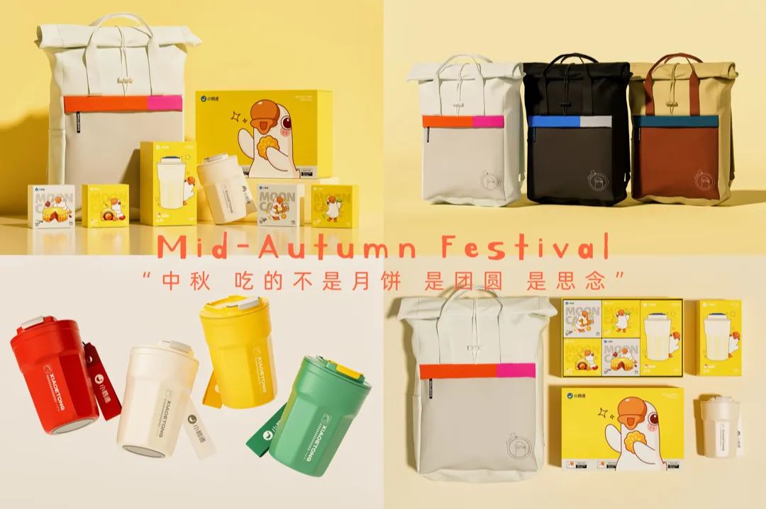 花好月圆人团聚,通通(小鹅通的昵称)一起庆中秋,主打一个“通通顺意”。中秋礼品包含:运动双肩包*1+316保温水杯*1+月饼*4枚(奶黄流心、抹茶流心、传统枣泥、红豆蛋黄酥)。