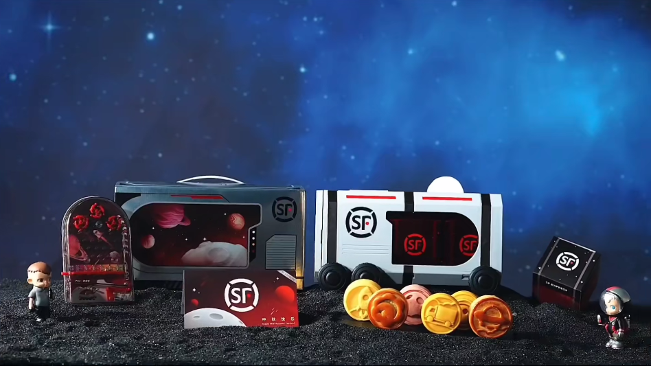顺丰的中秋礼盒主打太空版的“顺丰号”, 以快递车为原型,结合太空舱概念,打造了未来感“顺丰号”,当作收纳也很不错,其中还包含了可拆卸的弹珠机、小夜灯。