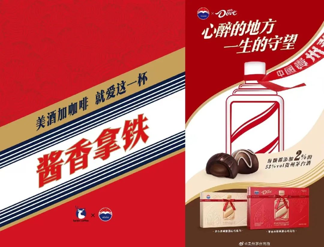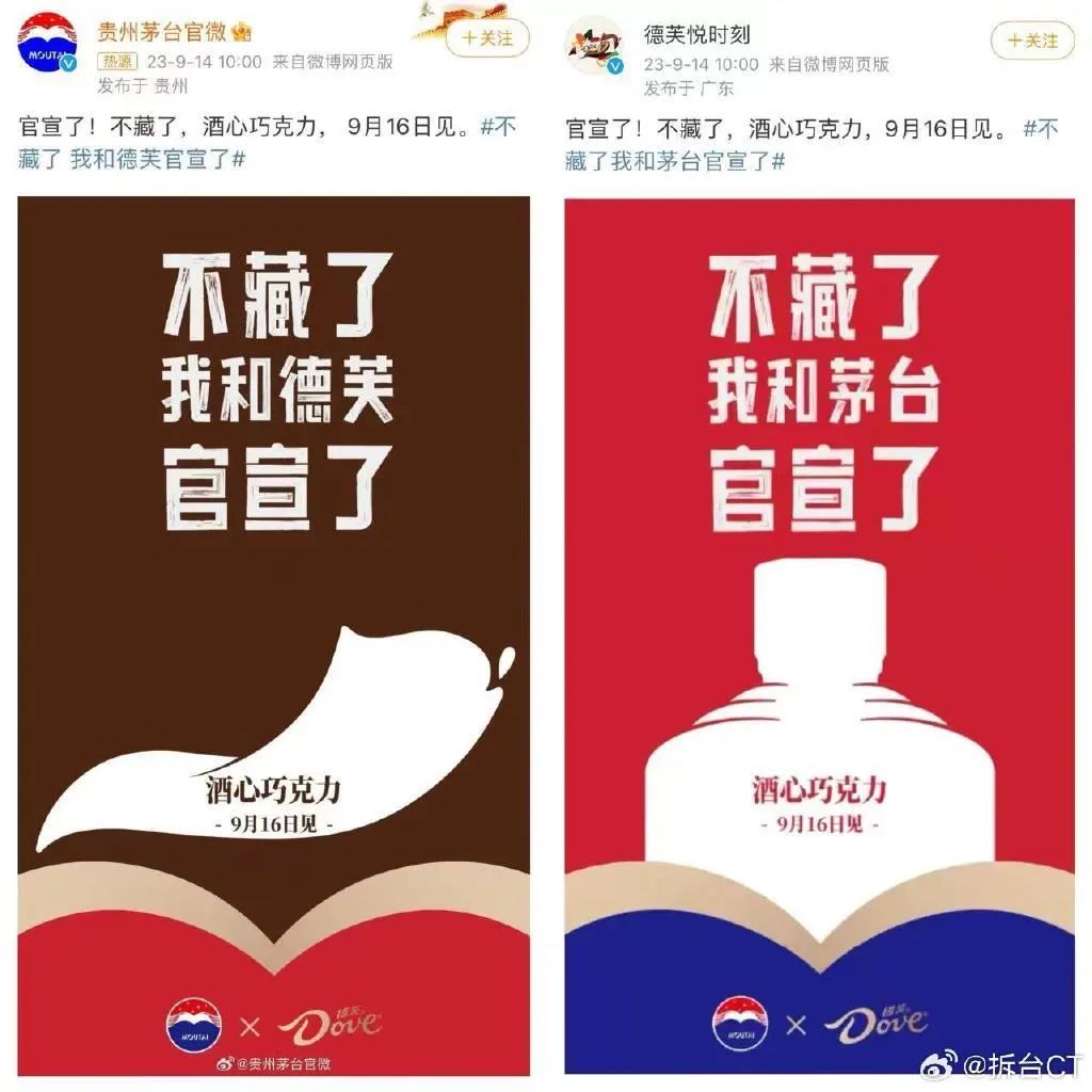 酱香拿铁席卷互联网仿佛还在昨天,最近,茅台和德芙的官宣又出现在热搜。