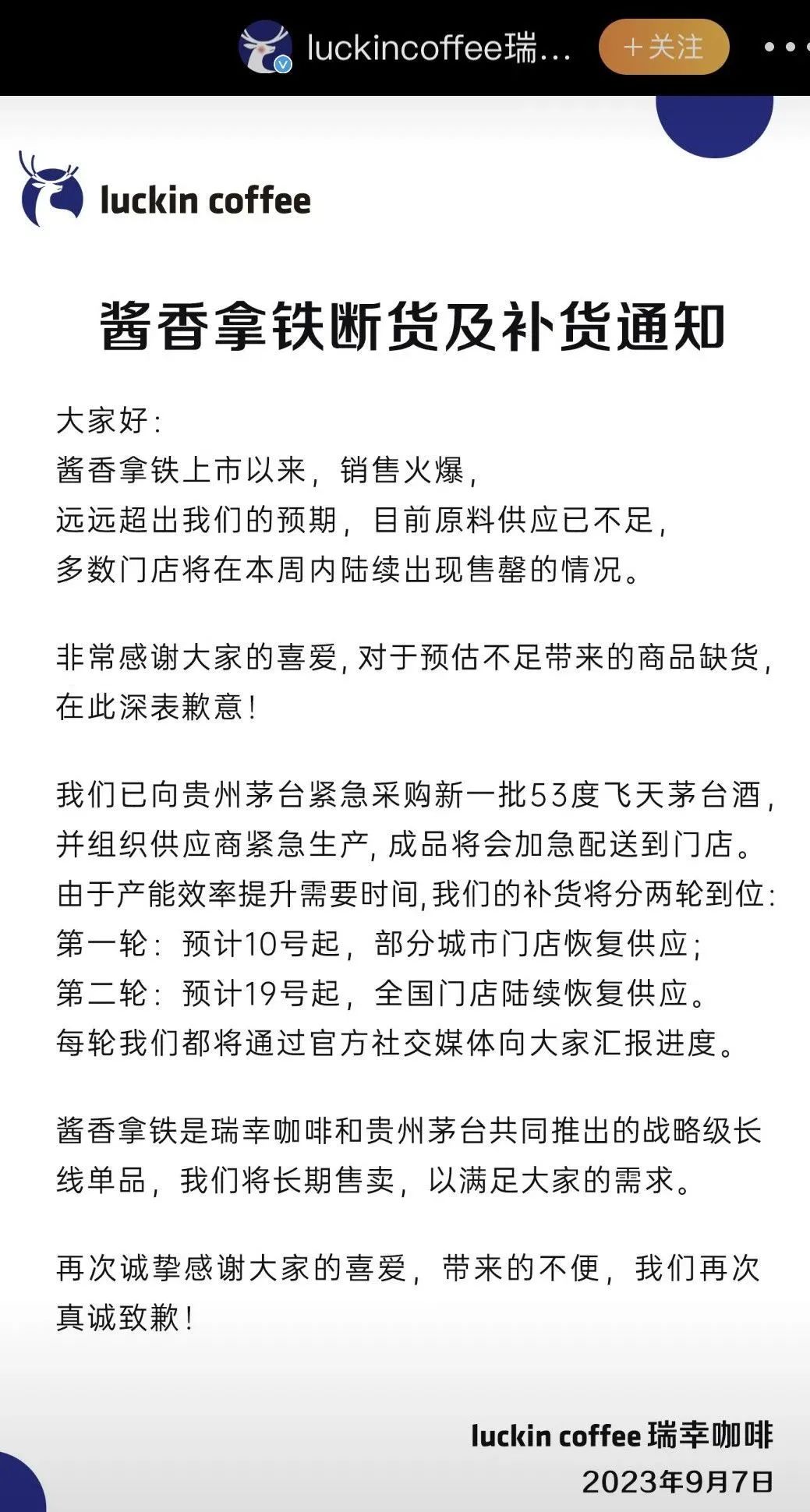 前段时间与瑞幸合作推出的“酱香拿铁”,首日销量突破542万杯、首日销售额突破1亿元。尽管大家对其口味褒贬不一,但能够引起广泛讨论,无疑已经赢了许多无人问津的联名产品。瑞幸也在补货通知中注明,酱香拿铁作为战略级长线单品将长期售卖。