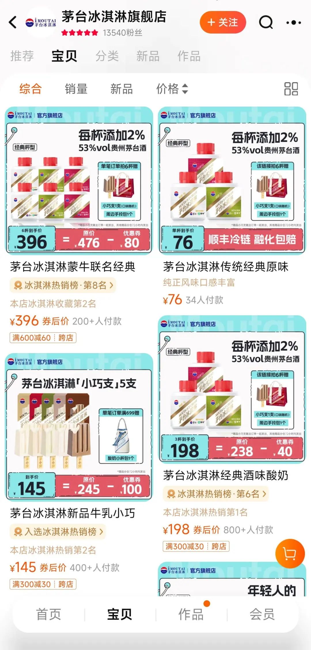 今年,茅台冰淇淋仍在持续更新,陆续上线新口味冰淇淋和茅台雪泥。7月29日,与中街1946联合推出5款“小巧支”,首次将零售价突破至30元以下,进一步丰富茅台冰淇淋产品矩阵。