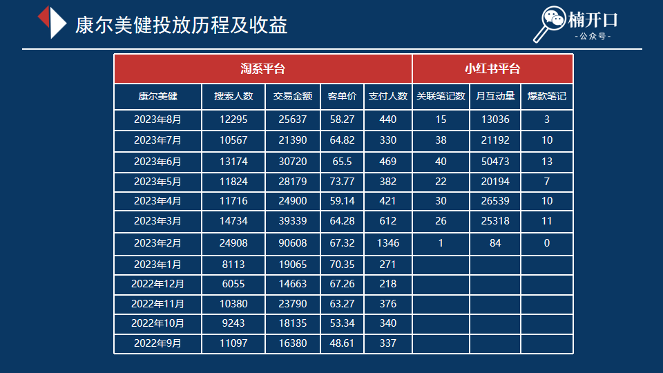 相较于康尔美健,古古是个小鞋匠撬动的流量更大,盈利更多。它们分别属于不同的品类,由此可看出不同的品类在小红书上收获不同的流量曝光的效率不同,能带来的销售额也会有差别。