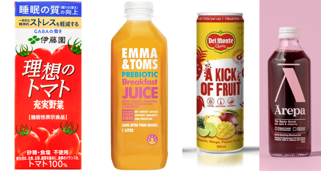 在海外市场,果汁的功能化则更加明显与多元,从肠道健康型果汁,到能量型果汁,再到助眠果汁、美容果汁,各种新功能的打造,让果汁行业呈现出勃勃生机。比如伊藤园在番茄汁中加入GABA,带来助眠效果;Arepa Calm & Clarity 则推出具有平静情绪、清晰脑功能的果汁饮品等。