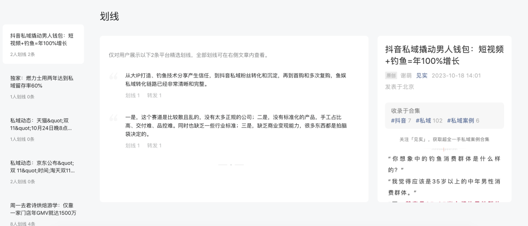运营者可以根据用户划线内容,获取用户关注重点,通过“自己做用户的大数据”,从而定制更契合用户需求的内容和产品,进而提升私域运营效率。未来的文章会更加精准,也将成为私域运营中提升与用户粘性的重要手段。