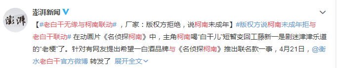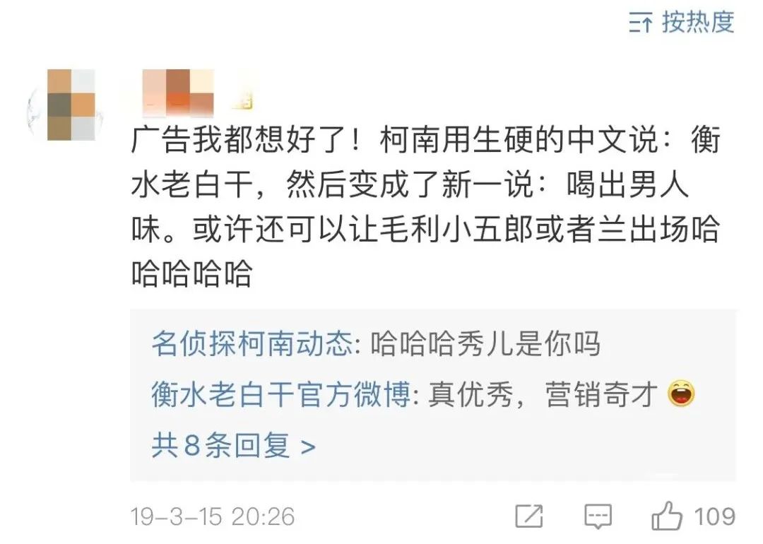 当衡水老白干儿也终于看到了柯南的梗,仿佛看到了自己跨界之路上冉冉升起的希望。
