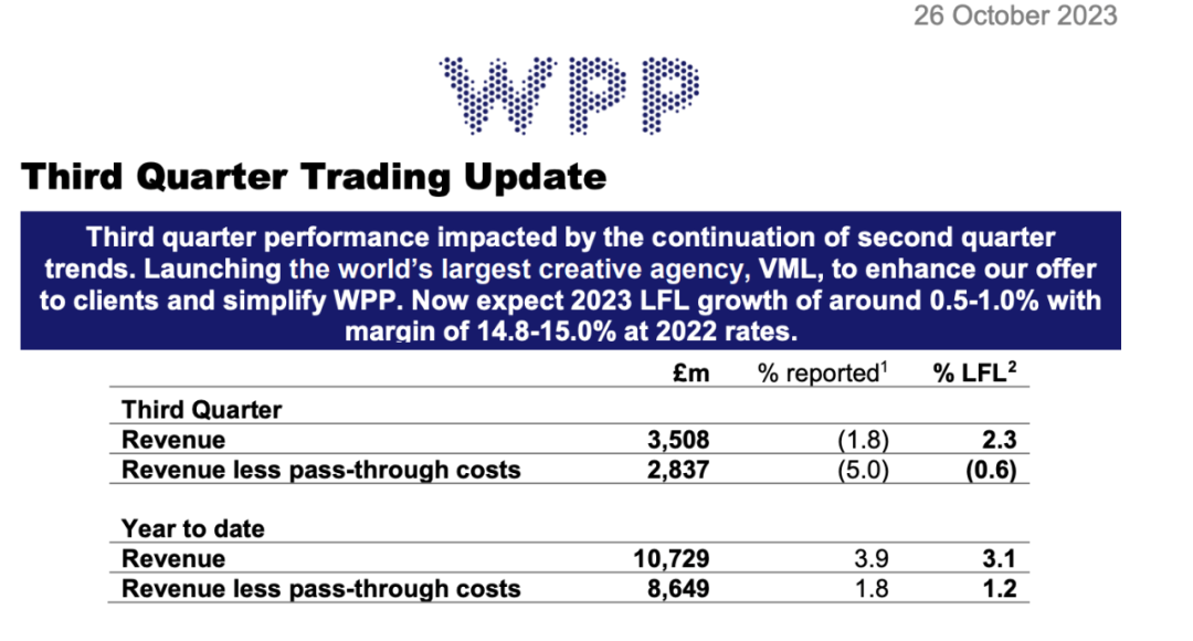 01.WPP集团第三季度负增长,并下调全年营收预期