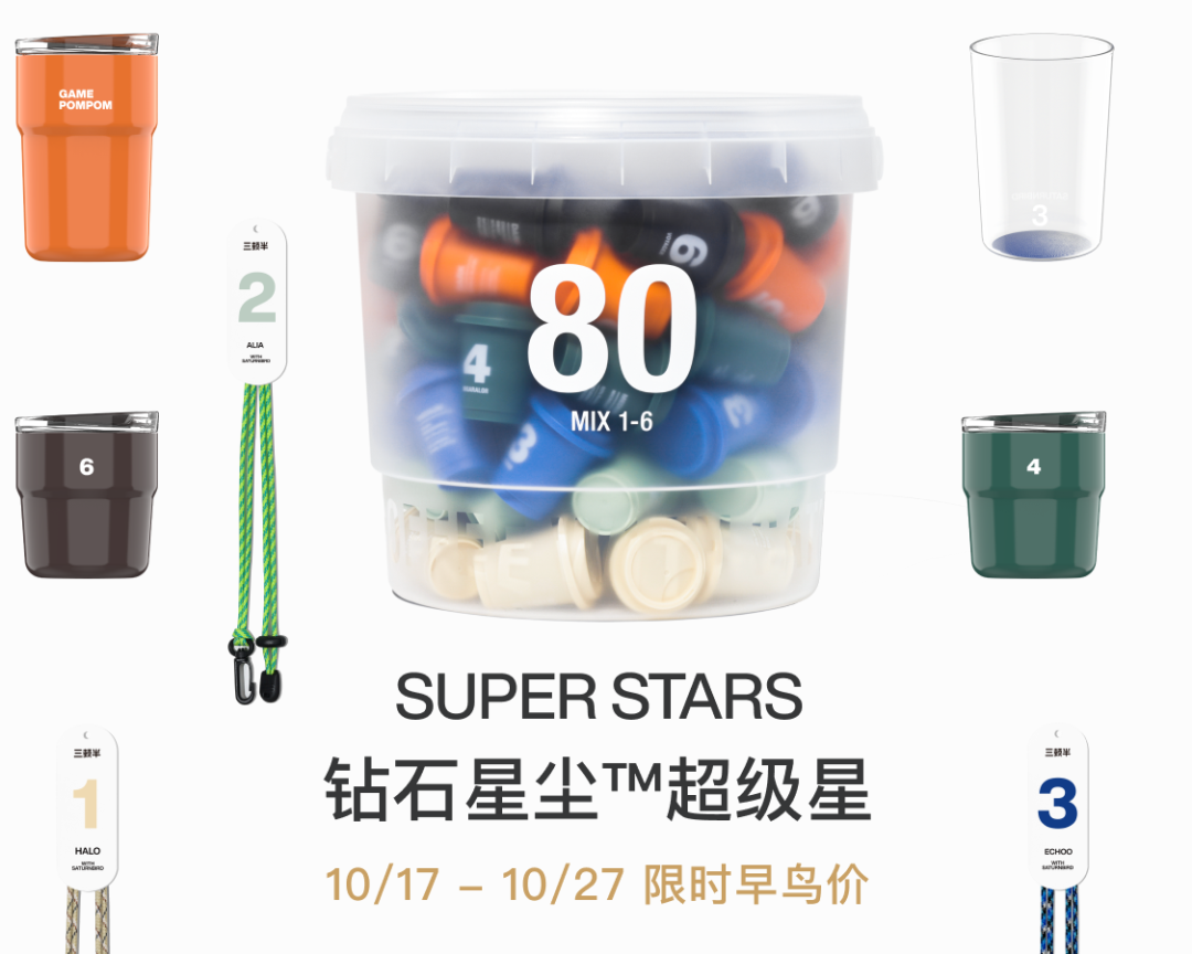 今年双十一,三顿半在品牌官方「旅行者世界」小程序独家发售「超级星」,这款量贩装由数字星球 80 颗装+限定周边+特别福利组成,10 月 17-27 日,限时早鸟价 449 元。用户购买所获得的“顿点”奖励,自发货后 15 天自动录入小程序。