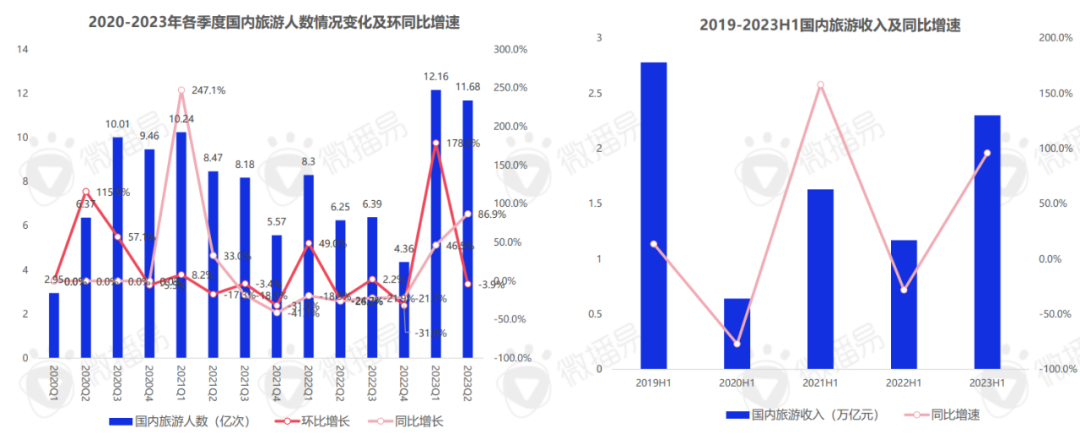 今年上半年,我国居民人均消费支出有明显增长,叠加国民压抑三年的出游需求,各地文旅市场展现出繁荣景象。 上半年,国内旅游总人次打到23.84亿,比去年同期增加了9.29亿。 在旅游收入上,今年上半年比去年同期增长95.9%。