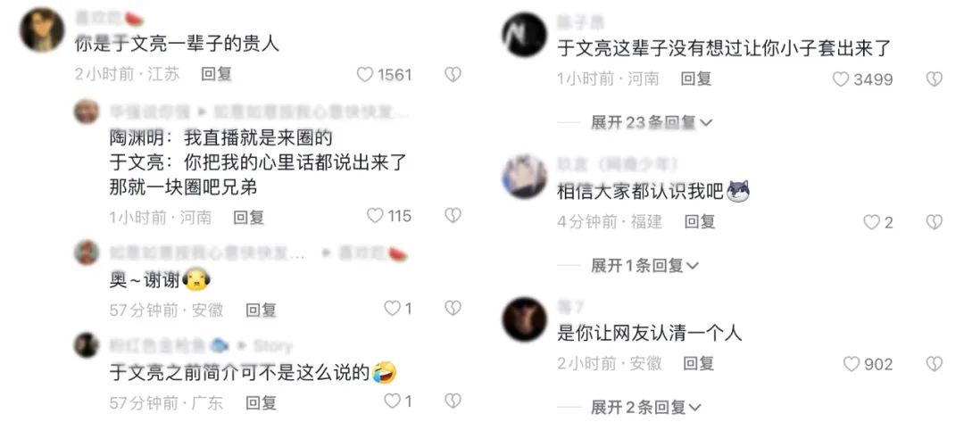 现在,感觉自己被欺骗、被愚弄的网友一边取关于文亮,一边去@陶渊明评论区调侃道:“你是于文亮一辈子的贵人。”