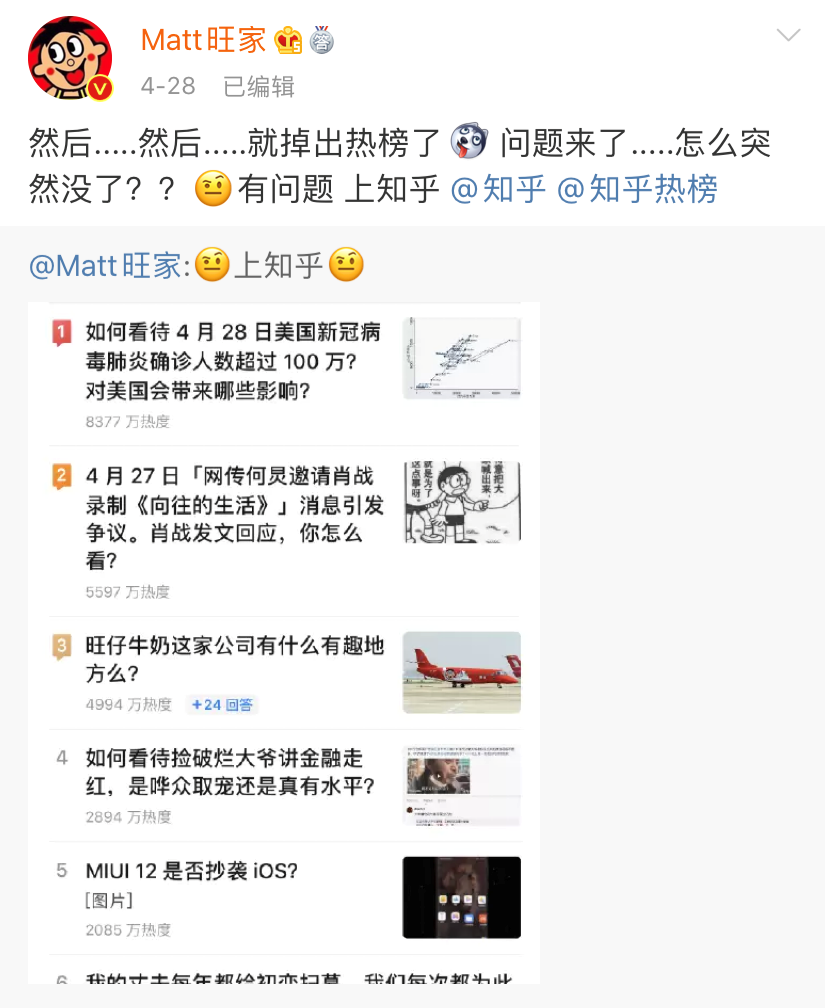 在知乎上吃瓜吃到自己,赶紧到微博呼吁大家走过路过别错过。