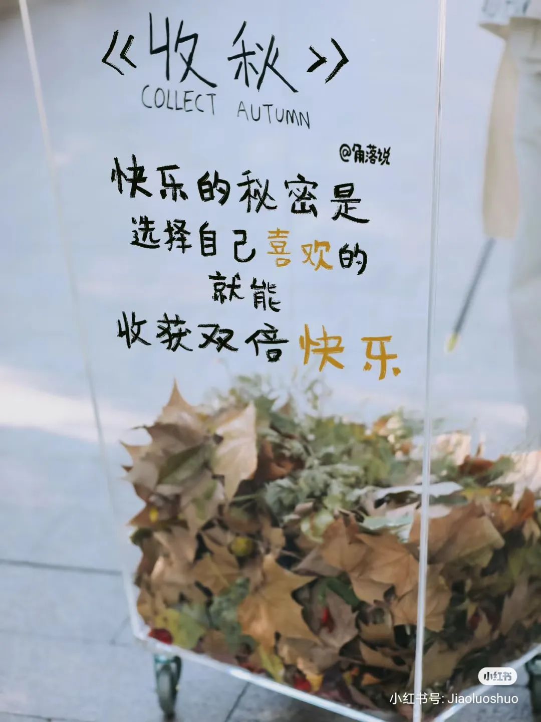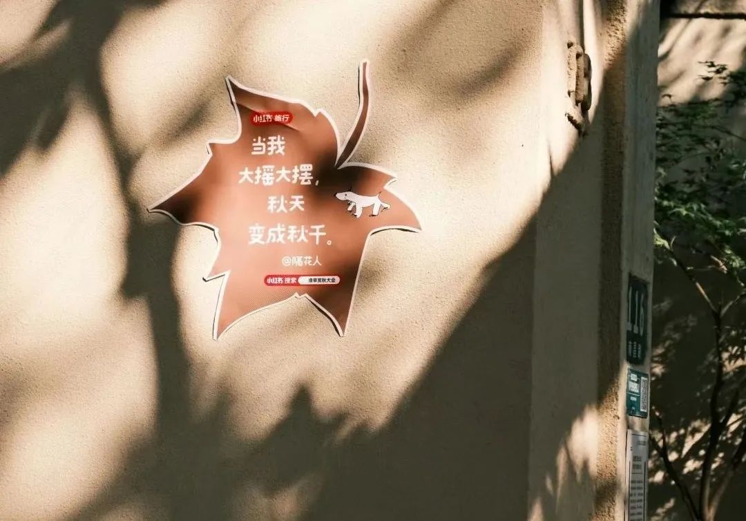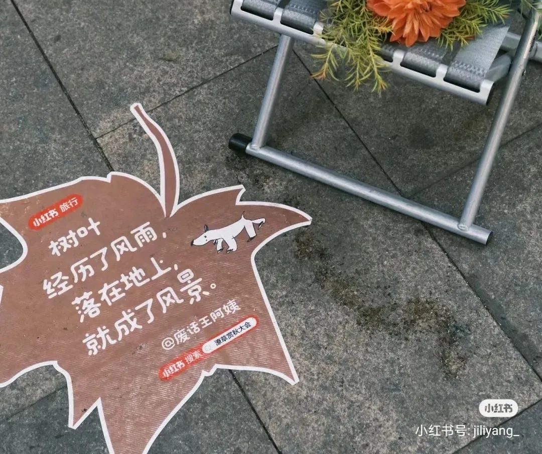 最近小红书在上海南昌路举办了一场「潦草赏秋大会」,各种潦草的文案,反而松弛感拉满,普普通通的街头,也因为这些潦草的打造变得秋意十足。