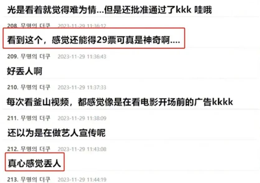 “每次看釜山视频,都感觉像是在看电影开场前的广告kkkk”