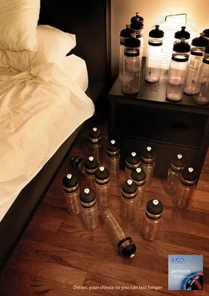 再举一个例子,同样也是一想到 “对比” 就想到了。 还是杜蕾斯的广告——XXOO完了要喝水。 而使用杜蕾斯的后果就是要喝这么多水,额~~