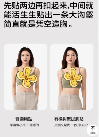 为了宣传胸贴的效果,将胸部的形态比喻为大沟壑?