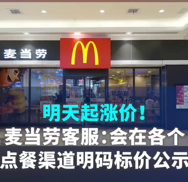 近日,有网友称,“麦当劳12月27日主要产品全线提价,接近90%的主要汉堡小食类产品挂牌价提价0.5元,麦卡套餐同步涨价1元。”“麦当劳明起涨价”一度冲上热搜1位。12月27日,麦当劳接受媒体采访时表示,结合近期运营成本的变化,麦当劳中国于2023年12月27日起调整了部分产品价格,平均涨幅约3%,已在各点餐渠道明码标价。此外,1+1随心配套餐不涨价。