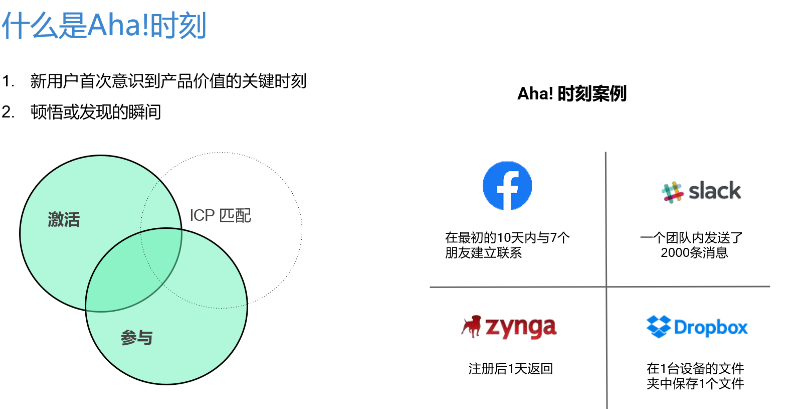 Aha时刻,也称为惊喜时刻或爽点,是指用户在使用产品时首次深刻理解产品价值的特殊体验。这个我们在谈到增长黑客的时候都会提及到。