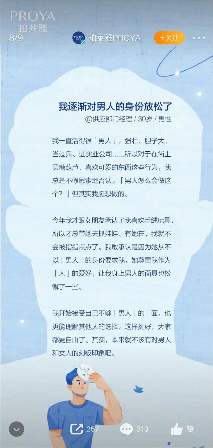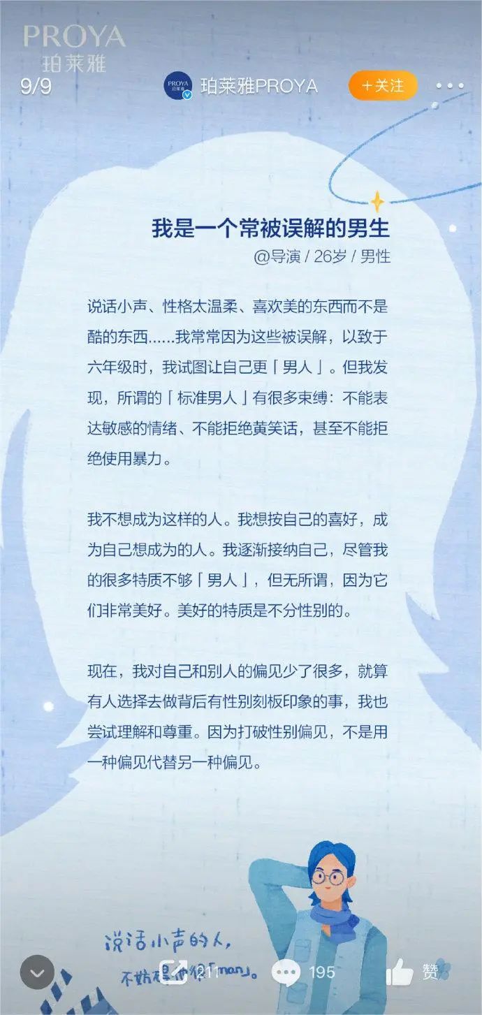 诚然,珀莱雅“性别不是边界线,偏见才是”的主旨是聚焦男女平等,但面对男性本就占据大部分社会资源的现状,在妇女节增加男性视角依然有失偏颇。