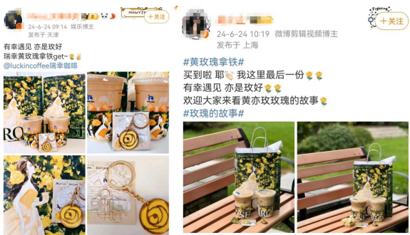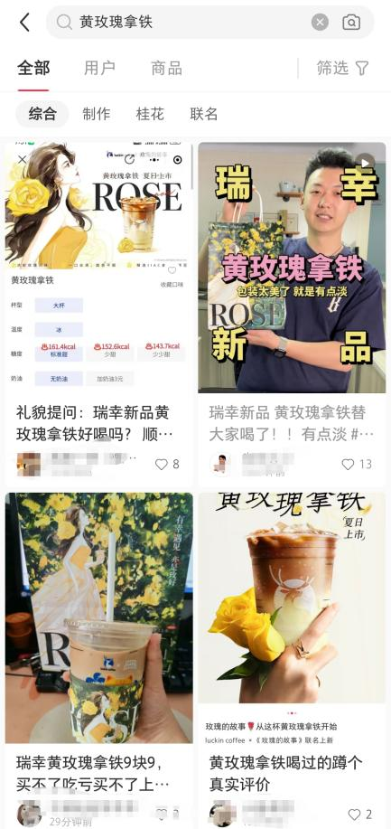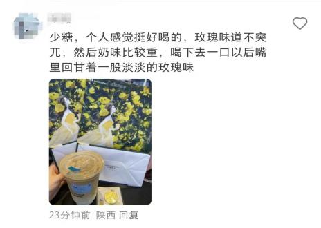 网友们一边感叹瑞幸的敏锐,一边感叹玫瑰的貌美,再加上“黄玫瑰+拿铁到底什么风味?”的好奇心,这款产品一上市直接卖爆。
