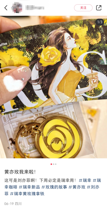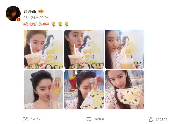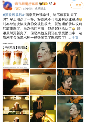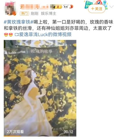 而刘亦菲也在微博上晒出了自己品尝黄玫瑰拿铁,以及与联名周边合影的照片,将更多人的目光卷入到这次合作中来,掀起了一波话题热潮。