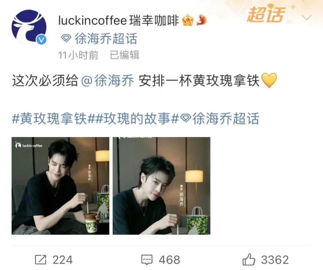 据了解,拥有5G网速的瑞幸,不仅在第一时间与《玫瑰的故事》联名,也与“编外男主”徐海乔合作,以玩梗的形式收获不少剧粉的好感。