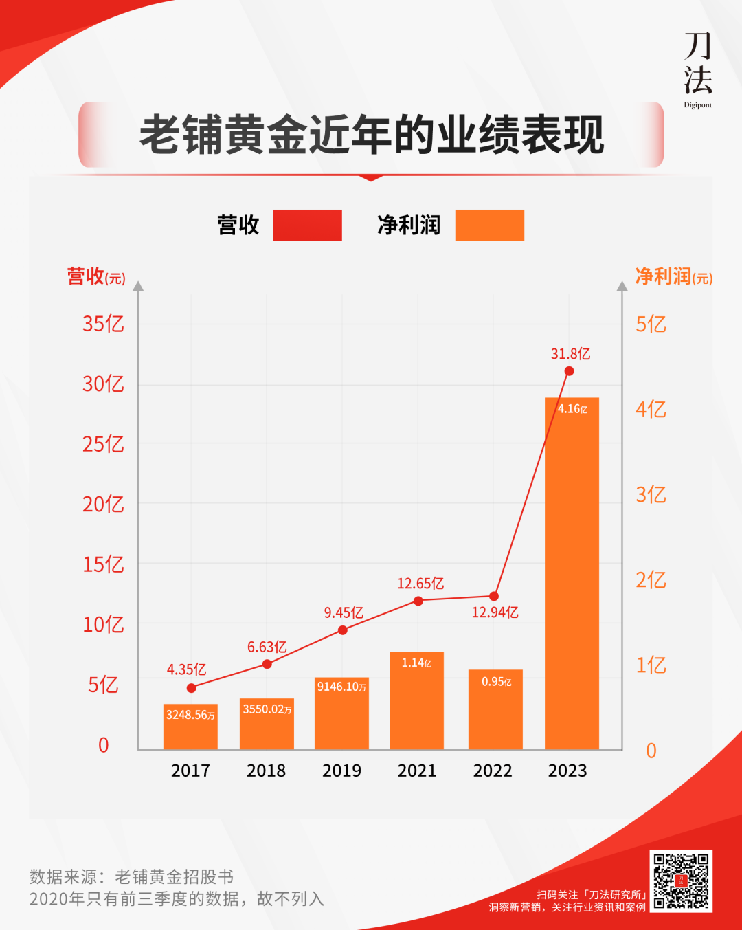 褒贬不一的评价,没有阻止老铺黄金的狂奔。刚通过港交所上市聆讯的它,2023 年营收和净利分别增长 145.6% 和 337.9% ,靠 30 多家门店揽下了 30 多亿营收。