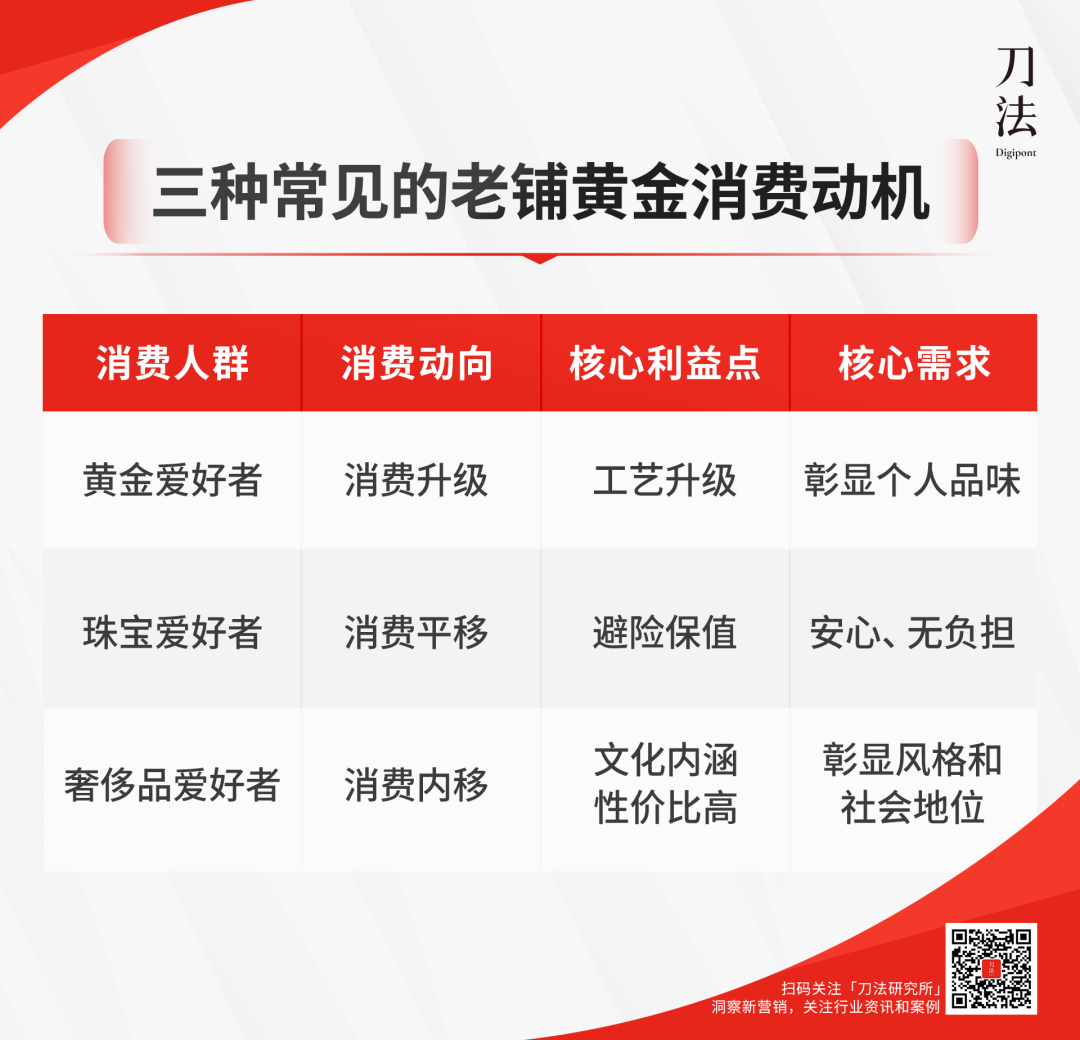 “消费得起老铺的不指望老铺升值发财,再不济也是黄金,买就完了”。避险从原来的上限,变成了与奢侈品竞争时的下限,助力了购买决策的达成。