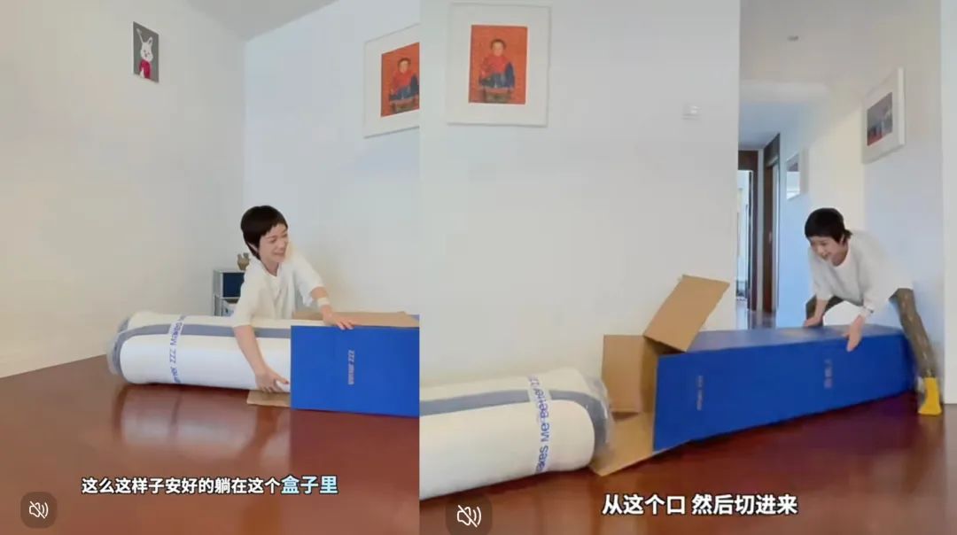 在盒装销售床垫尚未流行的中国市场,蓝盒子率先模仿 Casper,把床垫塞进狭窄的柱状包装盒中。一方面既解决了顾客头疼购买床垫不易携带、退货困难等问题,另一方面还提升了物流运输效率。