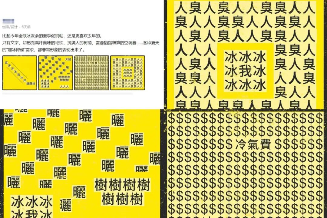 也有平衡视觉和文本元素的广告,确保内容能够真实而有效地触及目标观众的情感。上一年全联冰友会夏季促销广告,凸显了简约而直接的文字广告能够深刻且有效地传达情绪和信息。通过仅使用文字描述夏日中的常见不适——如地铁里的汗臭味、拥挤的树荫下的避暑场所、以及在使用空调时需要精打细算的电费——广告成功地唤起了消费者对夏季烦恼的共鸣,并间接强调了加冰产品在解决这些问题中的实用性和必要性。