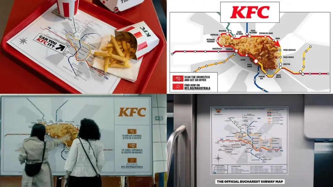 把鸡腿放进地铁图。肯德基的这次通过将布加勒斯特地铁的线路图转变为炸鸡腿的形状,肯德基不仅成功地引起了公众的好奇心,也巧妙地将产品与消费者的日常生活环境相结合。这种创意不仅仅是视觉上的玩味,更是在传达一个信息:肯德基的美食无处不在,随时可以成为你生活的一部分。
