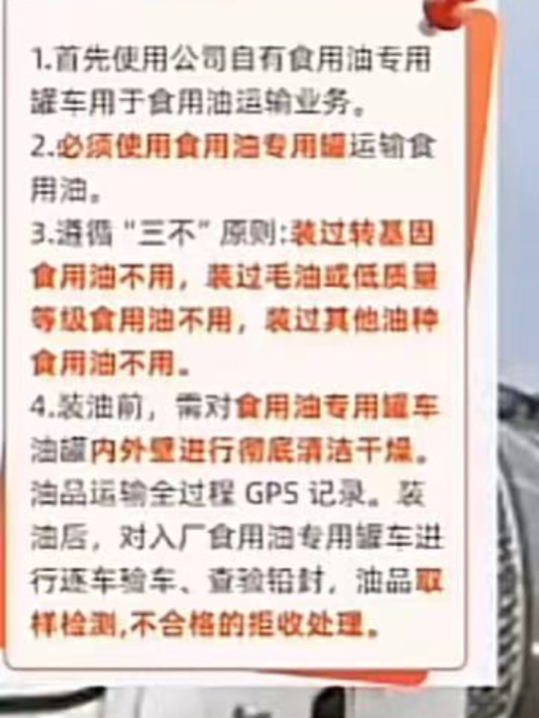 3、油品到厂后,收货工厂验证铅封,并进行了国家标准规定的食品安全、质量各指标检测,产品品质检测结果均符合国家有关要求。