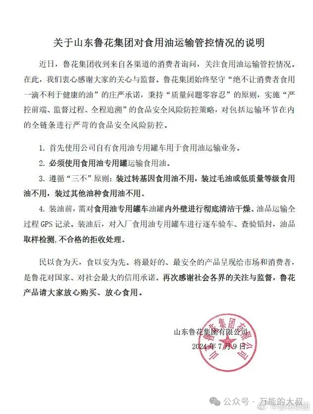 怎么理解这事呢?大叔认为,原因可能有2个吧:在事件没有官方定性之前,一方面大家都想自证清白,另一方面呢,也确实希望能接住这波“泼天”的流量。毕竟,网友看完报道,最焦虑的就是:到底谁家的油才安全呢?