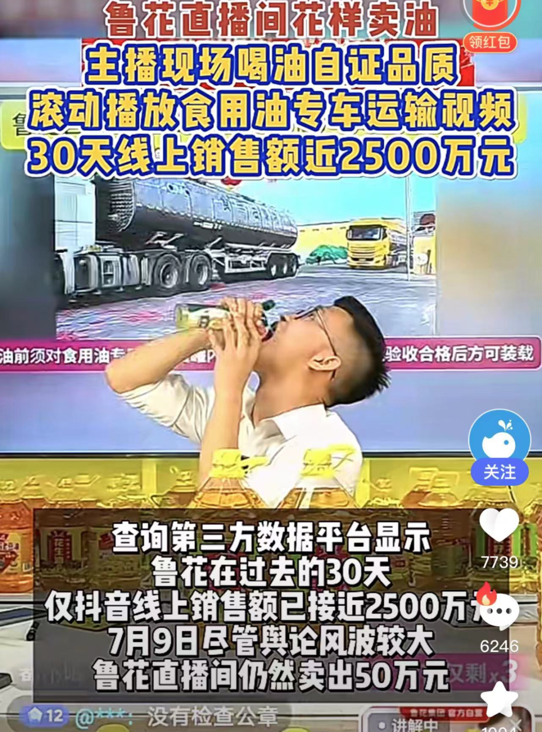 但你说,鲁花直播间的主播直接喝油,到底好不好呢?大叔只能说:这种行为看似在促销,实际上是在提供新的素材给公众。