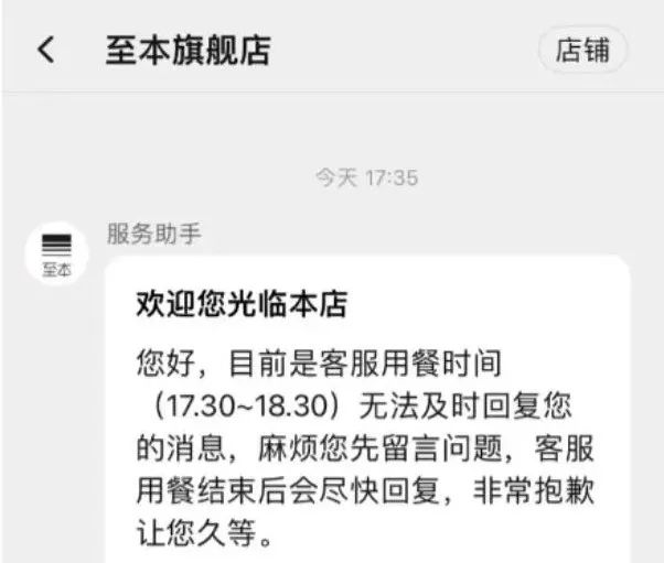 不知道大家在某宝某拼有没有见过这种客服用餐时间提示语?反正我是没怎么见过。