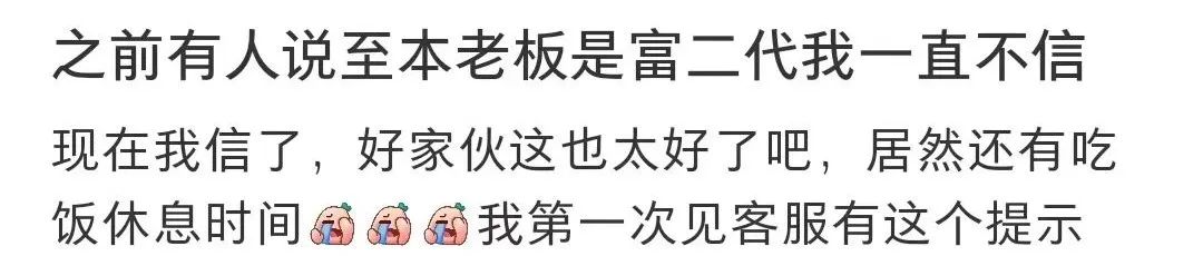 在高度内卷的电商环境下,客服基本都是24小时轮班待命。这样带着“人味”的休息提示确实不多。因此会给人一种至本把人当人看的印象。