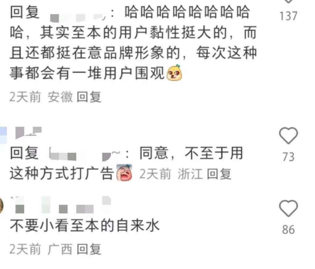 而且至本日常溺爱的品牌忠实粉丝们也纷纷站出来替至本说话,开始护犊子。有着广泛受众的平价品牌日常维护用户忠诚度和好感度的好处,因此显现出来。