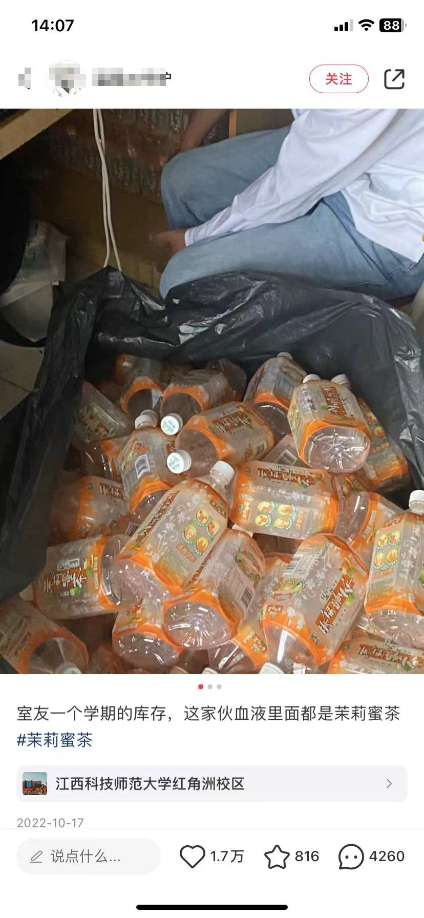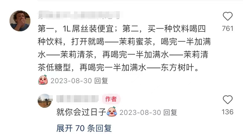 有人甚至把康师傅1L装的茉莉花茶喝出四种口味的,你这不是主打性价比,你这是要打算逆天。