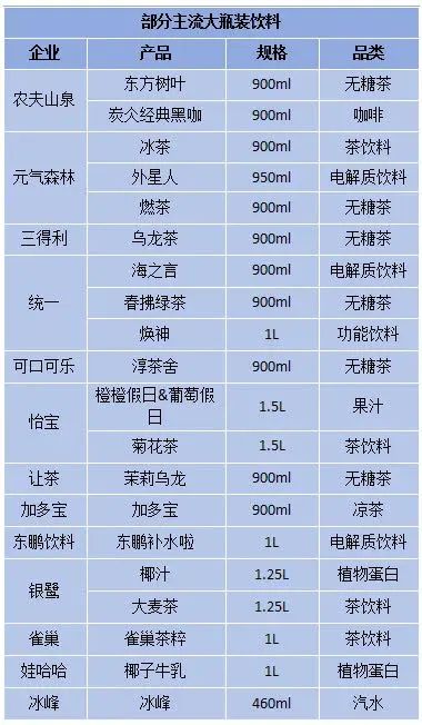 其实大瓶装饮料对于消费者来说并不陌生,早期市场上的大瓶装饮料以可口、百事、统一、农夫山泉、椰树等品牌为主。