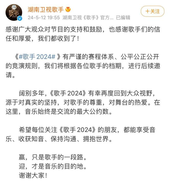 《歌手2024》之所以能够立得住,除了为大众提供了茶余饭后的社交话题,还能让观众与歌手的“使命感”产生共鸣,如同《歌手2024》一直传达的观念“迎,才是音乐的目的地。”。
