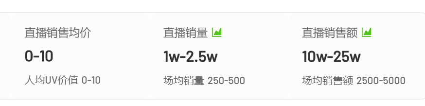 而在直播间商品单价不超过10元的情况下,每场直播平均销量可达“250-500”,近1月销售额达10w-25w。
