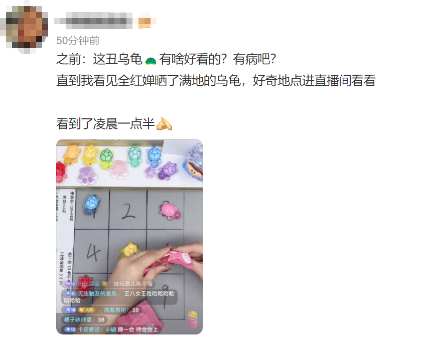 而这些让奥运冠军都玩上头的玩具乌龟,其实并不简单,它们来自近段时间大火的“拆盲盒”直播间。