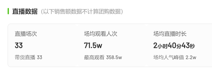 据飞瓜数据显示,其粉丝最多的“2店”账号,最近1个月直播33场,平均观看人次达71.5万。